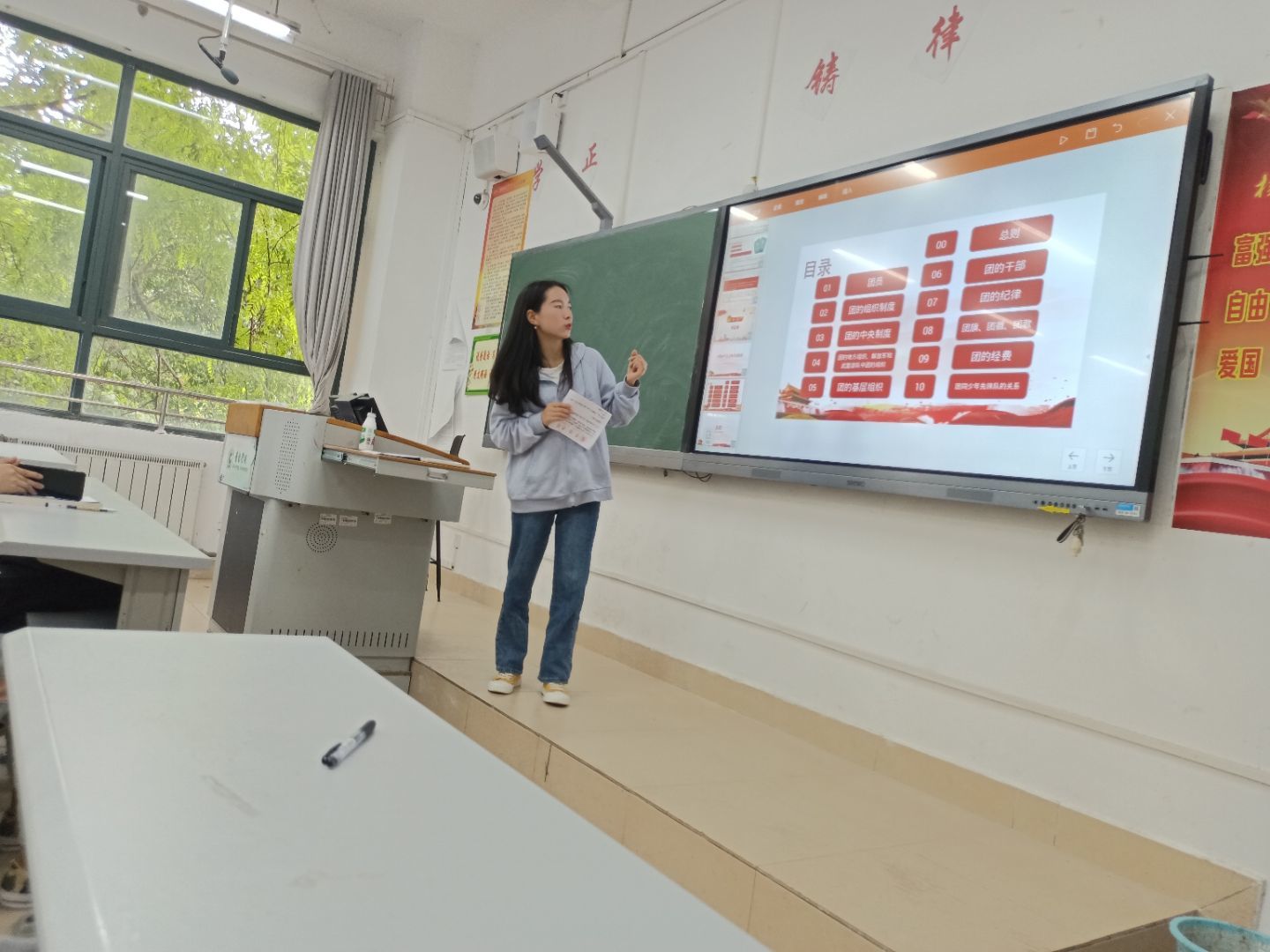 学习三会两制一课时,首先介绍三会两制一课是指支部大会、支部委员会、团小组会、团员教育评议制度、团员年度团籍注册制度和团课。其次,团员教育评议制度的对象是全体团员,时间是每年一次,进行是到会团员应该超过应到团员的三分之二才能进行评议。最后,团员年度团籍注册制度是每年一月份进行,以团支部为单位,超过注册时间一年未注册团员证的,即为失效。在学习团章部分,主要介绍了三个点。首先,共青团的性质是中国共产党领导的先进青年的群众组织,是广大青年在实践中学习共产主义的公司,是中国共产党的助手和后备军。最后,团旗,旗面为红色,象征革命胜利。左上角缀黄色五角星,周围环绕黄色圆圈,象征中国青年一代紧密团结在中国共产党周围。