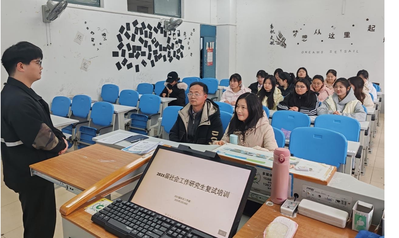 社会工作教研室主任南豪峰副教授强调:“复试不仅考查专业素养,更考验心理素质与沟通能力。”三位导师结合历年复试案例,建议考生聚焦学科前沿动态,将贵州基层社会治理等地域特色融入回答,展现理论与实践结合的综合素养。