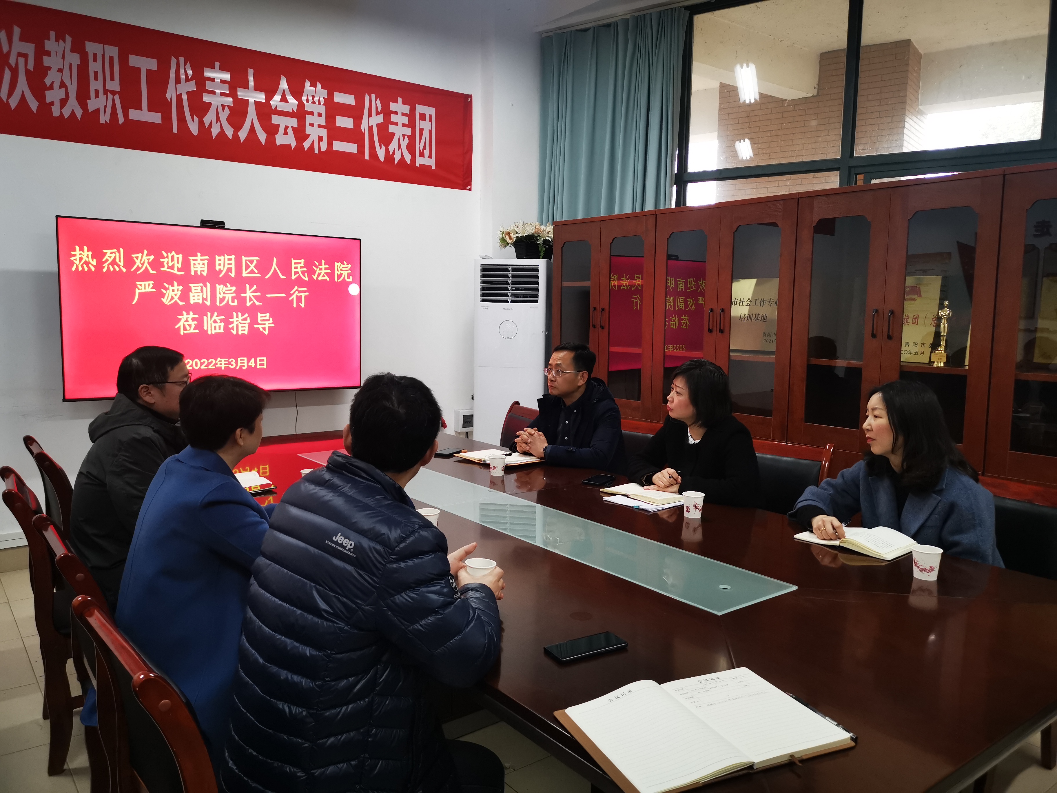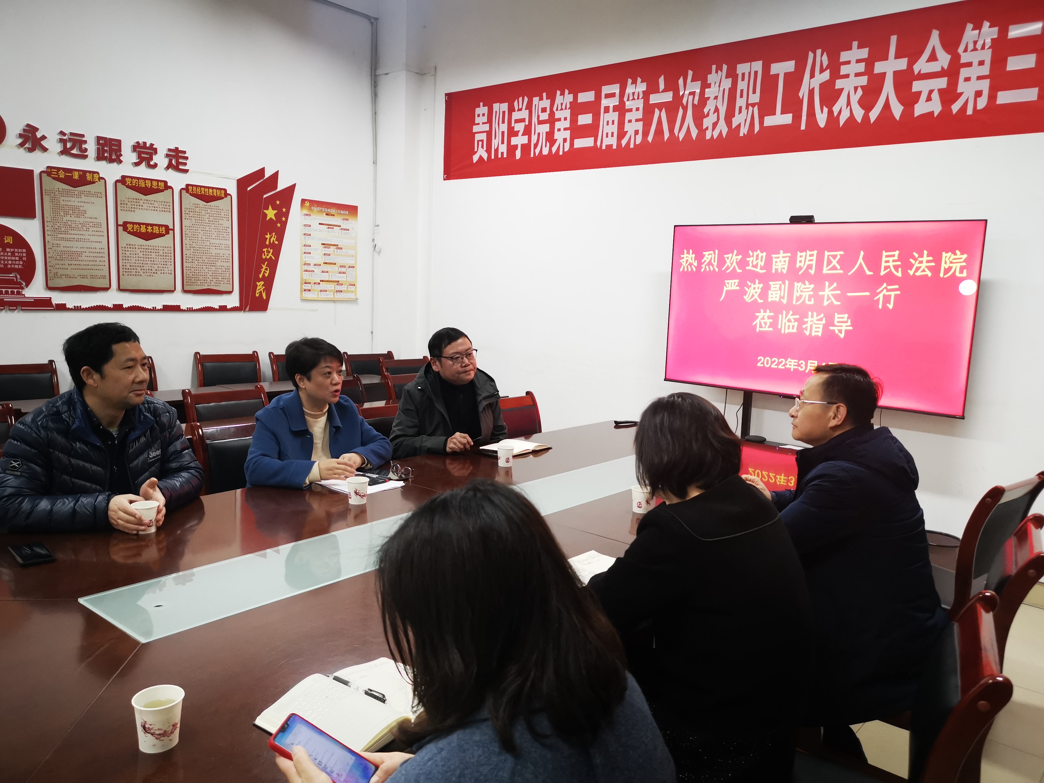 2022年3月4日,贵阳市南明区人民法公司党组成员、副经理严波一行应邀到伟德国际victor1946交流。