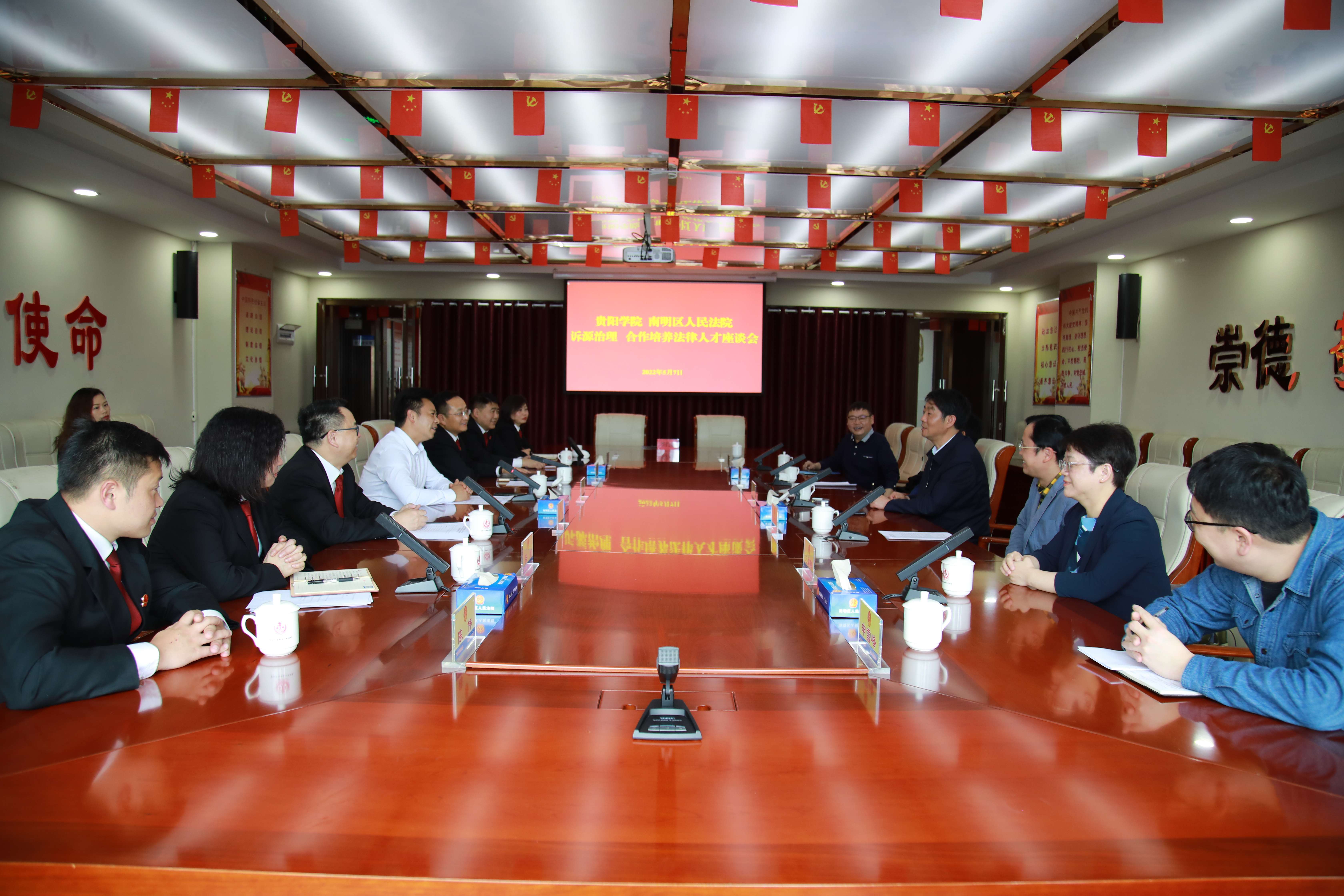 2022年5月7日下午,公司党委书记吕保平走访南明区人民法院,调研公司法学专业就业情况,并与南明区人民法公司党组书记、经理舒子贵,党组成员、副经理严波及相关同志开展座谈会。