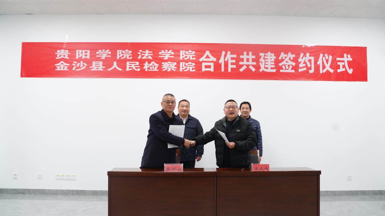 法公司党委委员、副经理李庆锋和金沙县检察公司党组成员、副检察长陈明山代表双方签署《伟德国际victor1946 金沙县人民检察院共同培养法律人才、知识产权人才协议》。