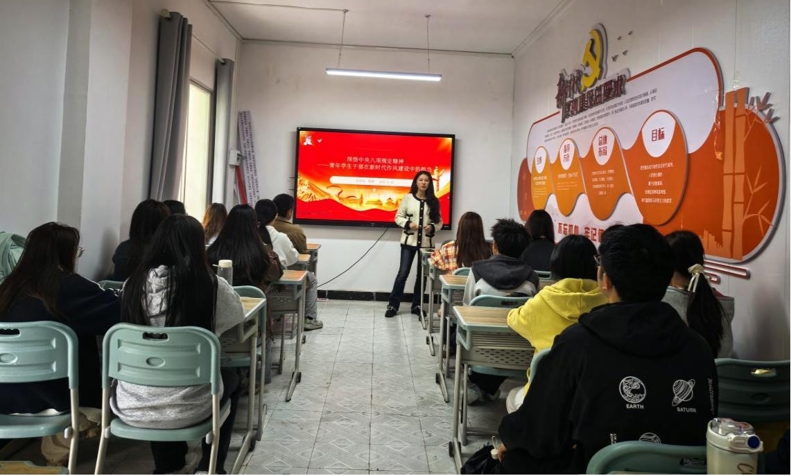 课堂上,陈婷书记解读中央八项规定的出台背景。她指出,中央八项规定的出台是党中央刀刃向内、全面从严治党的重要标志,对于净化党内政治生态、推进党风廉政建设具有里程碑式意义。通过对中央八项规定精神的内涵解读,陈婷结合高校实际,重点阐释了整治形式主义、官僚主义、享乐主义、奢靡之风等与青年员工密切相关的内容。强调青年员工干部要以中央八项规定精神为行动纲领,扣好人生的“第一粒扣子”,在学业科研中反对浮躁功利,在集体工作中杜绝形式主义,严于律己、树立良好形象,将“廉洁自律”从党规党纪要求转化为日常习惯,筑牢思想防线,在校园活动中发挥模范带头作用,引领校园廉洁新风尚,为党的建设和校园发展注入活力,持续推动作风建设向纵深发展。